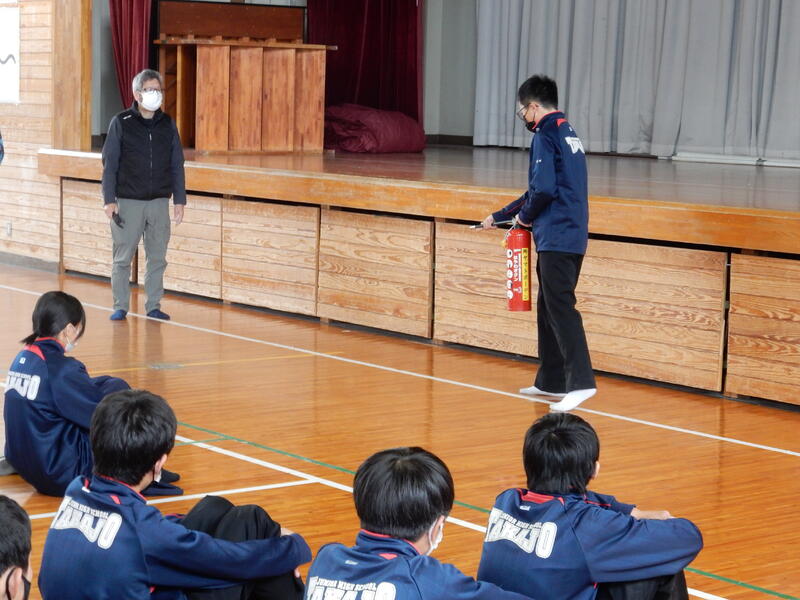 講話は北消防署に依頼していましたが、実際に管内で火災が起きてしまったため、急遽ヤマトボーデン様に依頼し、消火器の使い方の説明をしていただきました。