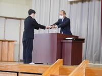 修了式では、生徒代表3名による発表があり。1年間の反省と来年度に向けた決意が堂々と述べられました。その後校長先生から各学年の代表に修了証書が授与されました。1年間の区切りをつけるのにふさわしい厳粛な式となりました。