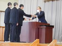 16日(木)に第76回卒業式が挙行されました。都城市教育委員会学校教育課副課長細山田 修様、学校運営協議会委員の皆様をご来賓に迎え、68名の卒業生は、学校長から卒業証書をそれぞれに直接手渡していただき、無事に巣立っていきました。