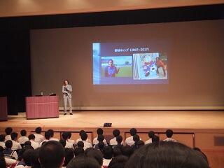9月20日(木)、高城生涯学習センターにて、都城ぼんち地域振興株式会社・高城スポーツクラブ主催による講演会が開催され、高城中学校と有水中学校の生徒が参加しました。元日本代表石川直宏氏(現 FC東京クラブコミュニケーター)を講師として、ユーモアがあり楽しい雰囲気の中、自分の体験談を中心に話していただき、生徒にとって、今後の進路選択をする際、役に立つと思われました。ありがとうございました。