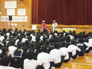 10月15日(火)は、高城高校で、芸術文化体験プログラム事業として古典芸能公演が開催されました。その中高連携の一環として高城中学校の全校生徒も一緒に鑑賞することができました。
