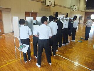 11月21日(木)は、生徒会役員選挙立会演説会を行いました。1年生8名、2年生8名の立候補者が自分の掲げる公約を、短い時間の中でみんなにしっかりと伝わるように工夫しながら述べました。どの候補者も理想の高城中学校を思い描いていて、とても頼もしく感じられました。そのあと、都城市選挙管理委員会から借りてきた記載台や投票箱を使って選挙を行いました。