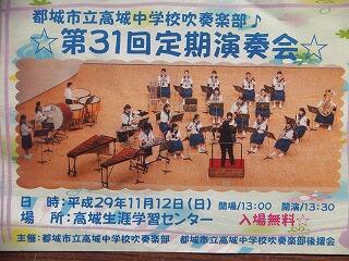 第31回定期演奏会を以下の計画で行います。保護者や地域の方々に参観していただき、激励のことばをかけていただけると、部員もさらに頑張れると思います。多数の来場を期待します。入場は無料です。