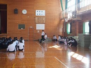 10月25日(水)、現生徒会役員による最後の生徒集会を行いました。宅習コンクールの表彰後、生徒会の企画で、全校生徒参加のレクレーションを楽しみ、絆をより深めることができました。新役員にしっかりと引き継いでください。お疲れさまでした。