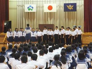9月27日(水)、生徒集会において全学級、合唱コンクールに向けた歌声を披露しました。