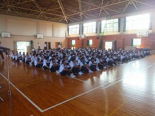 本日、2校時、体育館にて、1学期の終業式を行いました。各学年そして、生徒会役員それぞれの代表生徒が1学期の反省と2学期への抱負を発表しました。夏休み、事故やケガに気を付けて過ごしましょう。