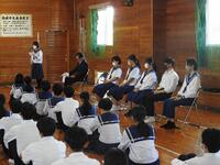 11月22日(水)、本校体育館にて新生病院の河野美帆先生を講師に迎え「専門医による健康教育講演会」を実施しました。インターネットに接続できる機器や手段が増え、中学生にとって身近になったインターネットとの適切な活用方法や、SNSとメンタルヘルスとの関連について学びました。