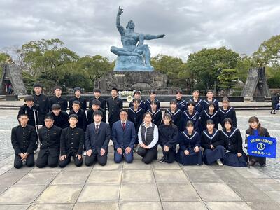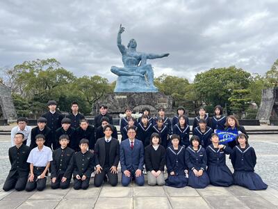 昼食後は、一日目の大きな行事、平和公園で平和式典を行い、千羽鶴を奉納しました。原爆資料館で原爆の恐ろしさ、平和の大切さについて改めて考えさせられました。