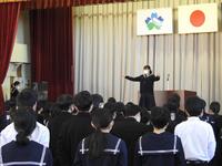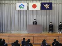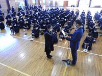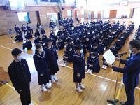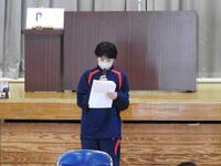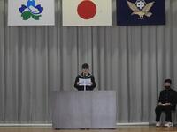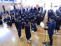 次に学校長から、3年生は進路実現に向けて全力を尽くすこと、2年生は高城中学校の顔として、より一層意識を高くもって学校生活を送ること、1年生は4月から先輩になるので、よき手本となるようにがんばってもらいたいこと、そして全員に向け3学期はまとめ、準備の学期であり、各学年の雰囲気づくりを大切にしてほしいと話がありました。
