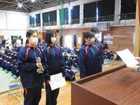 表彰後、3学期始業式を行いました。最初に各学年代表生徒による新年の抱負を発表しました。