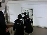 校舎耐震化工事等によって新たに取り付けられた布製の防火シャッターが閉まり、少々慌てたようすも見られましたが、非常口から真剣に避難する生徒たちは、いつものようにしっかりとした態度でした。