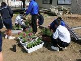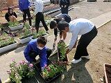 1月27日・28日の昼休みの時間を使って、生徒会の生活委員会1・2年生で、プランター40個に花の苗を植えました。