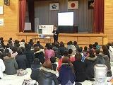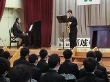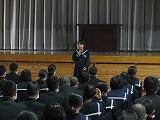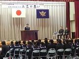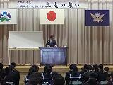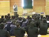 はじめに「立志式」を行い、生徒作文を発表したり立志の誓いを言ったりしました。次に行った「記念講演会」では、鵬翔高校サッカー部監督の松﨑先生に「あきらめない心~夢の日本一」という演題で講話をしていただきました。「コツコツ・一生懸命・まじめに・がんばる」こと、試合前には「しっかり睡眠をとる、ご飯をしっかり食べる、挨拶する、部屋をきれいに掃除する、机の周りをきれいにするなどの日常生活を大切にする」ことが大切というお話等を聞きました。