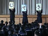 生徒会が事前に行った「いじめに関するアンケート」の結果から、今までの友人に対するかかわり方をふり返り、これからの友人に対する接し方を考え、行動できるようにしようと、2月21日(金)6校時に、生徒会による企画で『心の集会』を行いました。