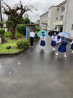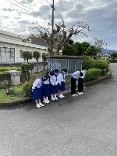 今日も雨の中、あいさつ運動をがんばってくれました。