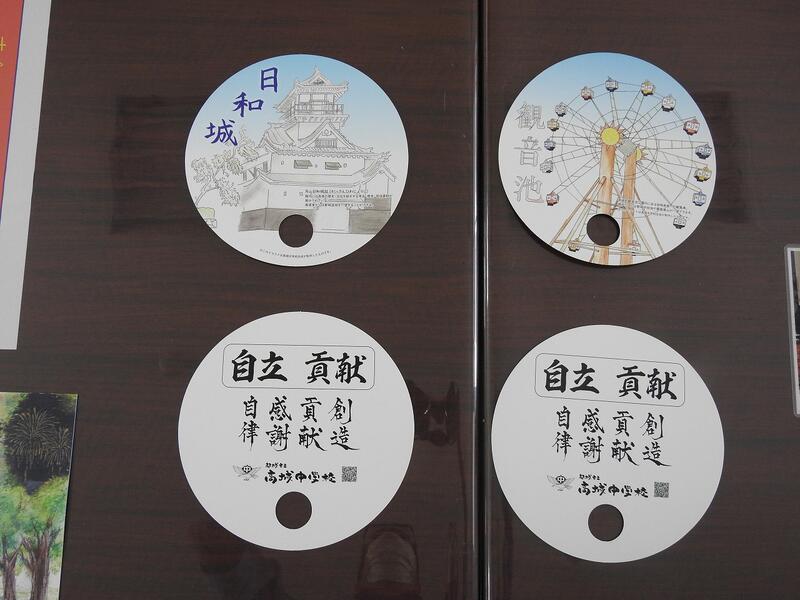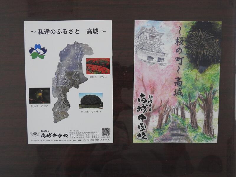 我が町である高城地区の魅力をPRするために、高城地区青少協、高城地区まちづくり協議会のお力添えをいただきながら、生徒が手作りのパンフレット及び団扇(うちわ)を2パターン作成いたしました。