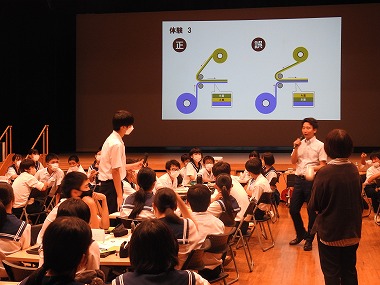 講話は、前半がチンドンの紹介や体験でした。生徒は楽しく笑顔で、チンドンの世界に夢中になっていました。