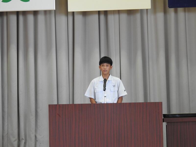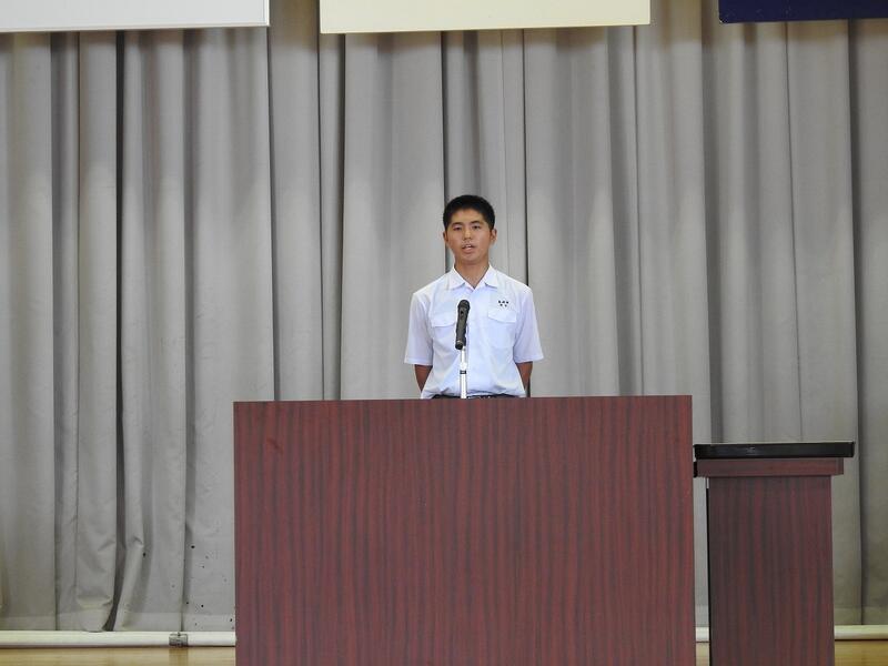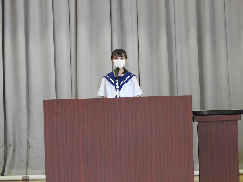 全校生活委員長が代表してお礼の言葉を言いました。