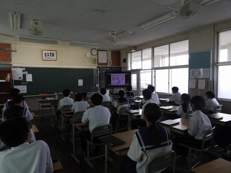 本日、栄養教諭の下石智佳先生に食育講話を実施して頂きました。全学級リモートで一斉に講話を視聴しました。生徒は皆、真剣に視聴していました。