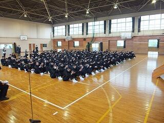 本日:1月9日(火)、3学期の始業式を行いました。寒い中でしたが、各学年代表3名、そして生徒会役員代表1名の生徒が立派に新年の抱負を述べました。それぞれの目標に向かって頑張ってください。その後、校長先生から新年のあいさつがあり、話の最後に、「なぞかけ」がありました。
