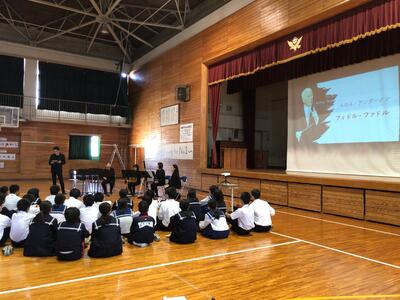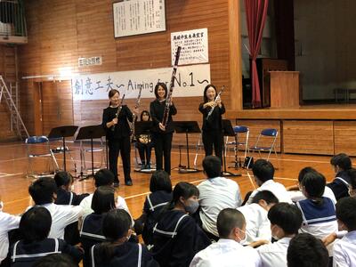普段聴くことの出来ない吹奏楽の音色を全校生徒で聴くことが出来て大盛り上がりでした。