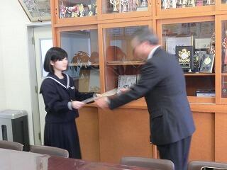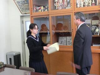 本日:12月11日(月)、税務署から職員の方々が来校されて租税作文表彰式が行われました。以下の6名の生徒が表彰されました。おめでとうございます。