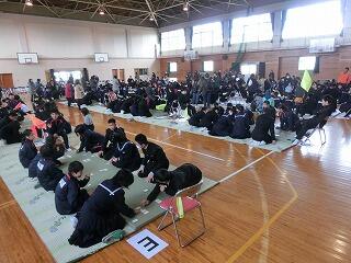 本日:12月12日(火)、参観日を利用して高城中学校初の「百人一首大会」を行いました。保護者の方や学校運営協議会の方々、寒い中、参観、ありがとうございました。