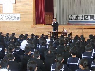 本日:12月13日(水)、都城市役所 商工観光部商工政策課(都城商工会議所)の事業である「夢見る課外授業」 を開催しました。種子田 義男 氏(株式会社 アイワホール 代表取締役・宮崎県中小企業家同友会 幹事)を講師として、今後の進路について学習を深めることができました。