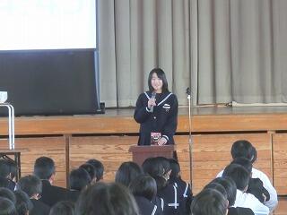 本日:12月22日(金)、2学期の終業式を行いました。各学年から、そして生徒会役員から合計4名の生徒が2学期の成果と反省を発表しました。お疲れさまでした。また、校長先生からは、今年は「活気」の年であった。来年は「新風」の年にしてほしいという話がありました。頑張りましょう。