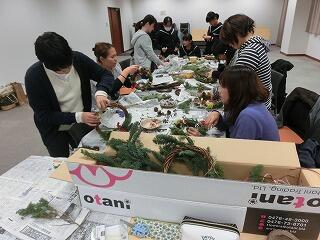 昨夜:12月20日(水)、野崎優子 様(花久)を講師として、クリスマスリースづくりを行いました。みなさん、楽しく活動され、有意義な時間を過ごせました。サンタさんが来ますように・・・。