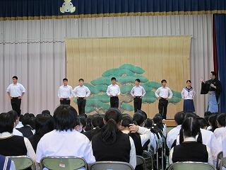 10月15日(火)は、高城高校で、芸術文化体験プログラム事業として古典芸能公演が開催されました。その中高連携の一環として高城中学校の全校生徒も一緒に鑑賞することができました。