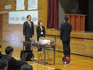 11月7日(木)は、3年生と保護者に高校入試説明会を行いました。都城や宮崎地区の高校15校から先生をお招きし、高校の学科内容や特色などの説明を聞いたり、質問をしたりして受検校を決める重要な機会としました。また、受検手続きや期限などについても説明を聞き、さらに、高校受検が迫ってきていることを実感し緊張感が増してきたようです。