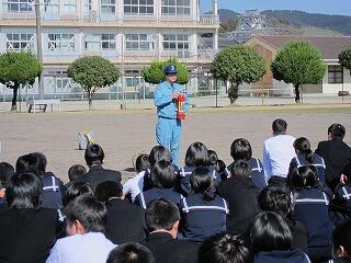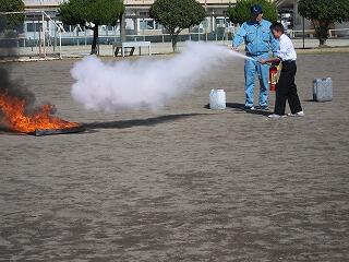2月19日(水)は、校内での火災を想定した避難訓練を行いました。火災報知器の鳴動後、訓練放送が入り、先生の指示に従って運動場に避難しました。2分48秒で全員が避難を完了できました。その後、業者の方に指導をしてもらいながら消火器を使った油火災の消火訓練を行いました。普段から消火器の場所や避難口の確認をしておき、非常時に備えておくことが大切です。