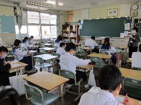 新型コロナウィルス感染防止のために臨時休業が続いている中、5月11日(月)は、5月最初の登校日となりました。4月28日以来、久しぶりの学校で、生徒の皆さんがうれしそうにしているのがとても印象的でした。3密に気を付けながら、課題などを提出したり、12日(火)から行われる分散登校の説明を聞いたりしました。いよいよ学習活動が再開されます。みんなと学びあうことの素晴らしさを感じてほしいと思います。