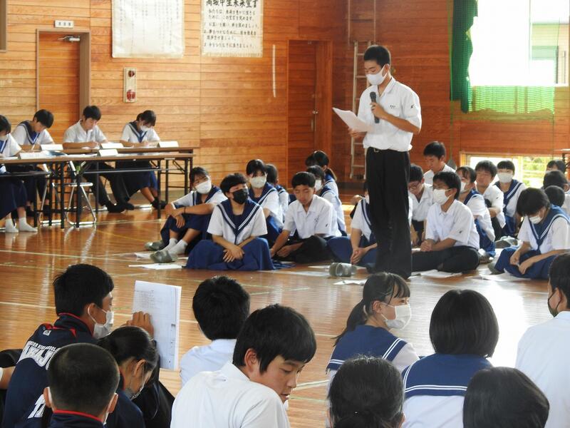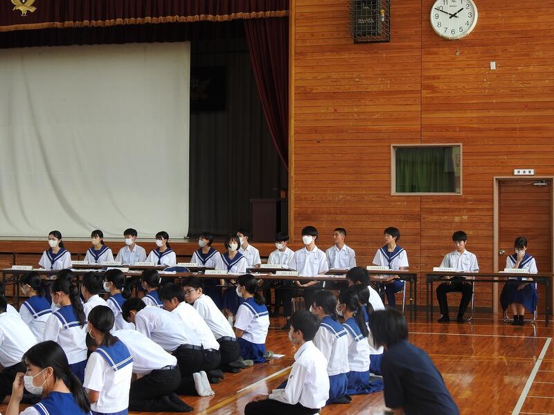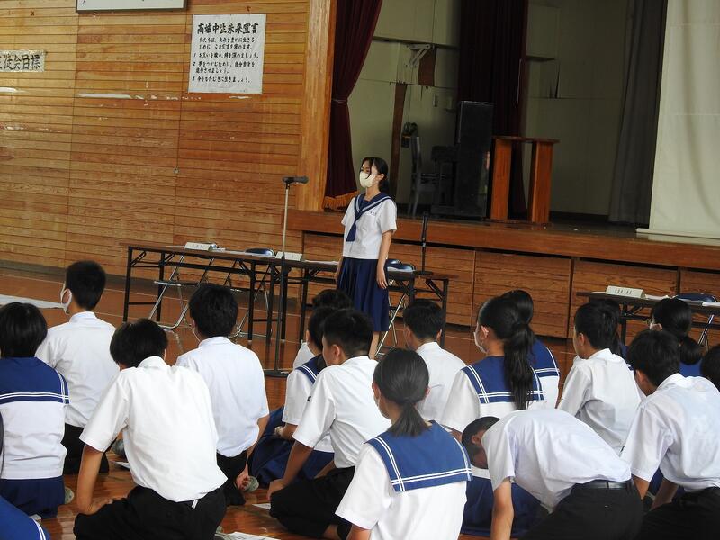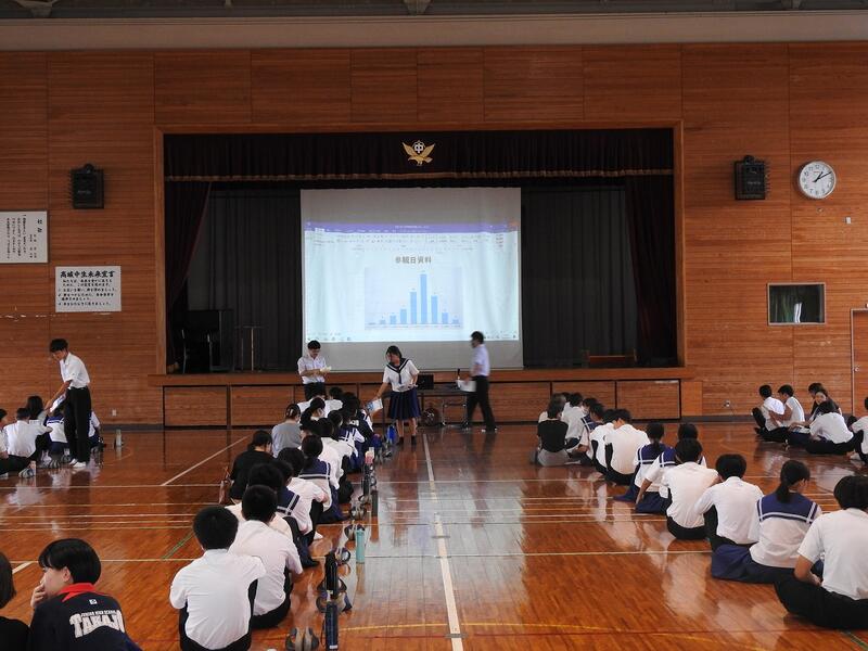 6月15日(木)の5,6校時に本校体育館にて、生徒総会が実施されました。全校生徒でより良い高城中学校を作っていくために、今年度の総会では、「礼儀正しい学校にするためにはどうしたらよいか」と「地域に貢献するためにはなにができるだろうか」の2つの議題で、活発な話し合いができました。
