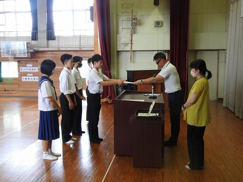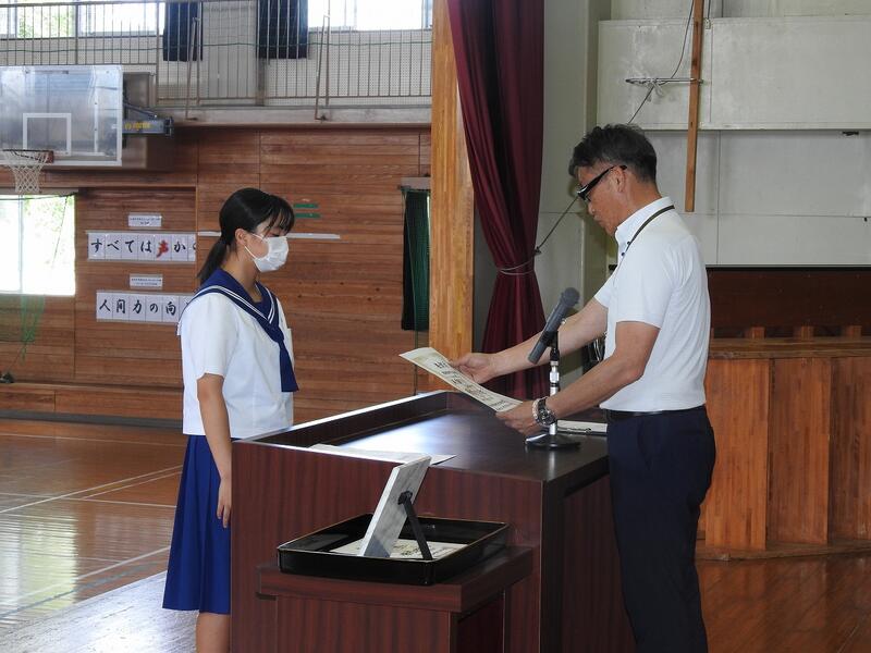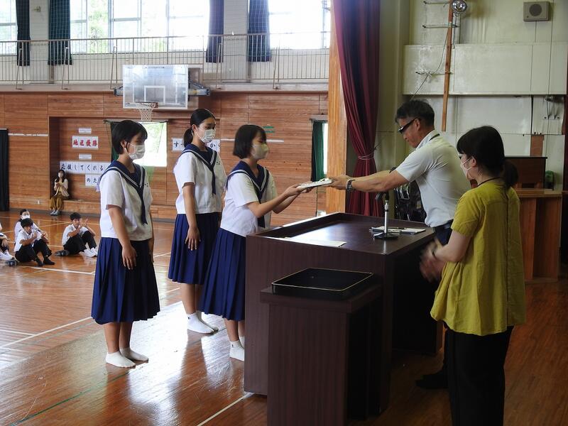 6月28日(水)に表彰集会を行いました。地区大会を勝ち抜いて、県大会の切符を手にした部活動生のみなさん、おめでとうございます。県大会でも活躍を期待しています。なお、地区中総体の結果は、メニューの「部活動」を御覧下さい。