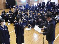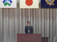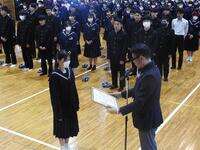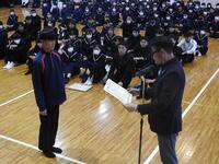 各学年と生徒会代表による1年間の反省の発表や、学年代表への修了証書の授与が行われました。