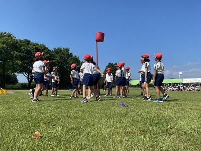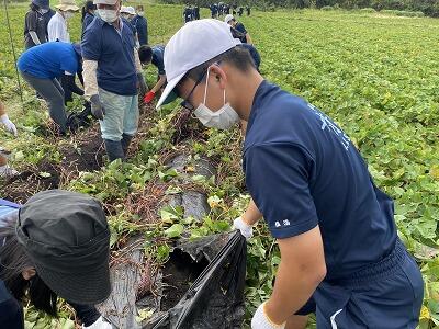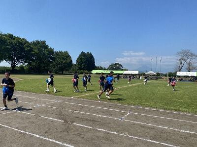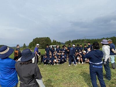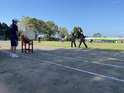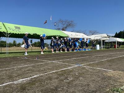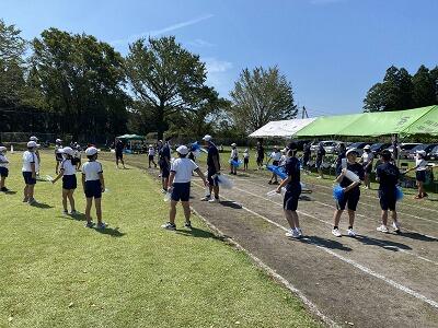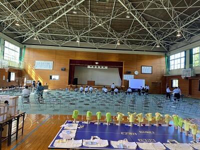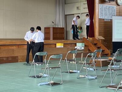一方、1.2年生は体育館でシートを敷いていました。会場づくりですね!