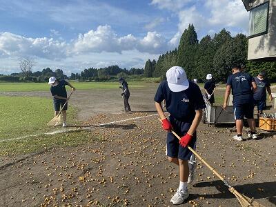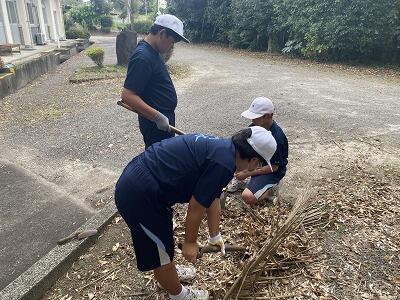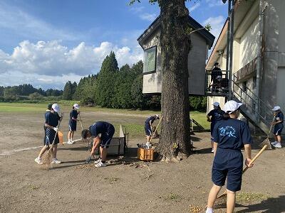 日曜日に、地元の有志の会その名も浜省会の皆様が、校内の犬走りのラインをきれいに整備してくださいました。