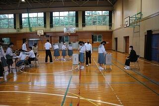 1校時には、8月3日(月)、4日(火)に行われる「都城地区部活動合同競技(交流)会」の「選手激励式」が行われました。野球部に続いてバドミントン部入場後、各部個人とチームの抱負を、それぞれ各個人とキャプテンが述べました。その後、生徒代表激励のことば、校長の話のあと、両キャプテンによる選手宣誓で激励式を終わりました。