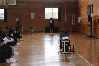 講話の途中で、DVDを視聴し、薬物のサンプルを見たことにより、生徒の皆さんが、薬物依存の恐ろしさをより身近に感じられたように見受けられました。「薬物に手を出さない。」「周囲から誘われても、きっぱりと断る。」勇気が持てるようになるといいなと感じました。