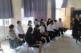 演奏の途中で、声を出さずに、誰かの合図で、全員が合わせて手を打つゲームがありました。お二人は、「みんなの息が、何回も、こんなにぴったり合う学校は珍しい。」と驚いていらっしゃいました。