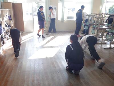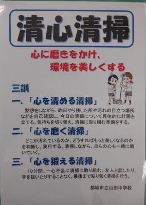本校には、「清心清掃」という言葉が代々引き継がれています。学習にふさわしい環境を整えることは、落ち着いた学校生活を過ごすことにつながり、さらには、学力向上にもつながると期待しています。