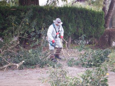 今回は、プールや中庭周辺に除草剤を散布していただいたり、グラウンド周辺の草刈りを行っていただきました。現在、グラウンドで活動している部活動がないため、グラウンド内の雑草が元気に生えてくるのに困っているところでしたので、大変助かりました。