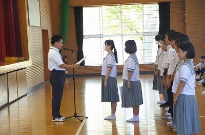 終業式では、吹奏楽部、女子ソフトテニス部の表彰をした後、