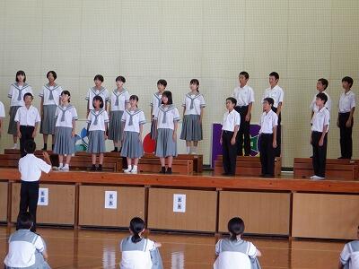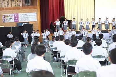 また、山田中、庄内中、山之口中の3校合同で合唱したMrs. GREEN APPLEの『僕のこと』も、優しくて励まされる歌詞が心に伝わってくる素晴らしい歌声でした。10月の紫峰祭における、各クラスの合唱も期待しています。