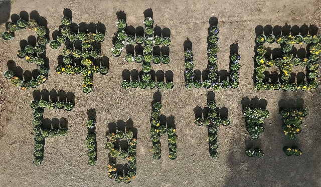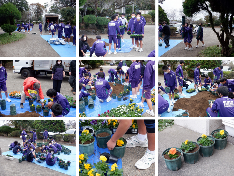 今回の花文字メッセージは「3年生 山田 Fight !!」。明日、県立推薦入学者選抜検査に臨む3年生に宛てたものです。また、今日から2月に入り、部活動の活動時間が30分長くなりました。部活動をがんばる1、2年生へもエールとなるよう先頭に「3年生」「山田」の文字がつけられたのでしょうね。いつもステキな花文字ありがとう。