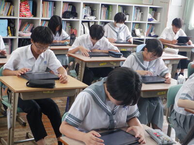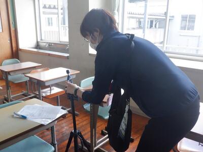 9月17日(水)、学校薬剤師による騒音検査を、音楽室隣りの少人数教室で実施しました。学校における騒音検査は、学校保健安全法に基づき、学校薬剤師に定期的に行っていただいています。今回の検査結果は、窓を閉じている場合で45.5dB以下、窓を開けている場合で47.7dB以下で、十分に落ち着いて学習に取り組める環境でした。