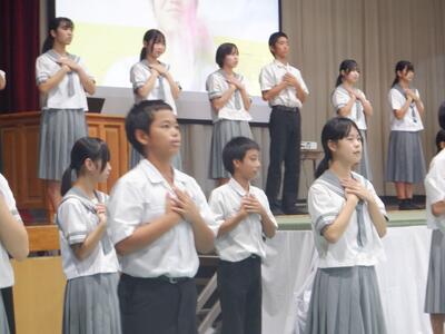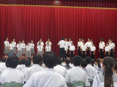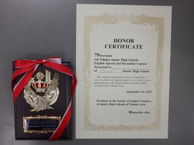 なお、弁論の部に出場した生徒は、第3位の成績に輝き、令和7年9月30日(火)、宮崎市民文化ホール(イベントホール)で開催される第77回宮崎県中学校英語弁論大会に、地区代表として出場します。高円宮杯全国中学校英語弁論大会の予選会を兼ねています。ぜひ、全国大会の出場を目指し、さらなる飛躍を期待しています。