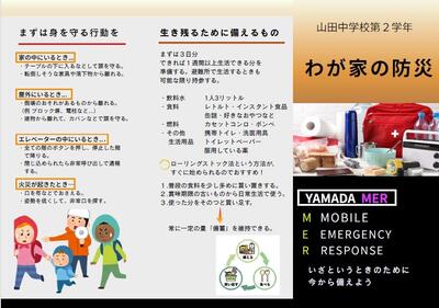 また、学習の一環として、『わが家の防災』のリーフレットを作成しました。3つ折りにすることでコンパクトになり、保管しやすくなるように、レイアウトを工夫してまとめました。一家に一枚あると役に立つ内容ですので、ぜひ下のリンクからダウンロードしてみてください。